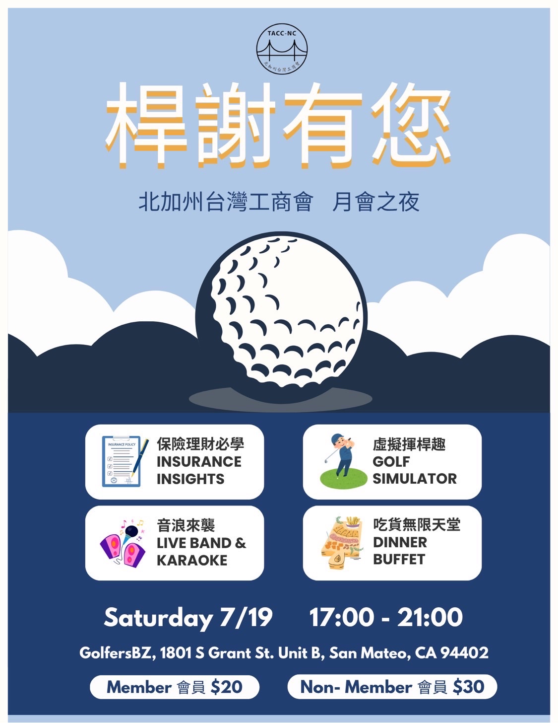 Join us for TACCNC’s first monthly mixer of the new term — a vibrant evening of networking, music, food, and golf at the interactive indoor venue GolfersBZ! Whether you’re a long-time member or new to the Taiwanese-American business community, this is the perfect chance to meet fellow professionals, build connections, and have fun in a relaxed setting.